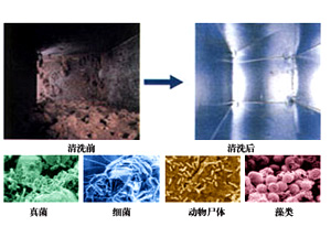 清洗前后與微生物 風(fēng)管清洗原理圖